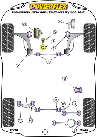 Les silentblocs Powerflex sont fabriqués en polyuréthane de qualité supérieure, apportant une meilleure longévité et une rigidité accrue par rapport aux silentblocs constructeurs (25 à 40% pour la gamme routière). Le polyuréthane est traité pour résister aux différentes souillures qu'il pourrait rencontrer au fil de sa vie (eau, saletés, huiles...) et va contribuer à améliorer la tenue de route de votre véhicule. Les versions Compétition (références se terminant par BLK) ou Black Series sont conseillées pour les véhicules de compétition (sauf Gr N), de circuit, ou préparés, étant mieux adaptés à un usage extrême. N’hésitez pas à nous contacter pour tout conseil sur le choix de la gamme le plus adapté à votre usage.