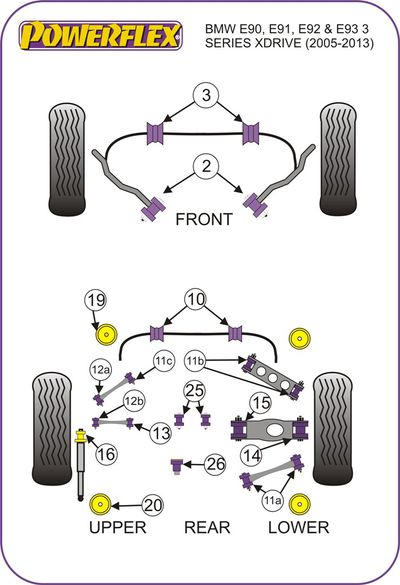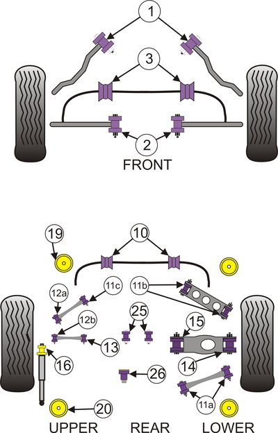 Les silentblocs Powerflex sont fabriqués en polyuréthane de qualité supérieure, apportant une meilleure longévité et une rigidité accrue par rapport aux silentblocs constructeurs (25 à 40% pour la gamme routière). Le polyuréthane est traité pour résister aux différentes souillures qu'il pourrait rencontrer au fil de sa vie (eau, saletés, huiles...) et va contribuer à améliorer la tenue de route de votre véhicule. Les versions Compétition (références se terminant par BLK) ou Black Series sont conseillées pour les véhicules de compétition (sauf Gr N), de circuit, ou préparés, étant mieux adaptés à un usage extrême. N’hésitez pas à nous contacter pour tout conseil sur le choix de la gamme le plus adapté à votre usage.