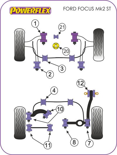 Les silentblocs Powerflex sont fabriqués en polyuréthane de qualité supérieure, apportant une meilleure longévité et une rigidité accrue par rapport aux silentblocs constructeurs (25 à 40% pour la gamme routière). Le polyuréthane est traité pour résister aux différentes souillures qu'il pourrait rencontrer au fil de sa vie (eau, saletés, huiles...) et va contribuer à améliorer la tenue de route de votre véhicule. Les versions Compétition (références se terminant par BLK) ou Black Series sont conseillées pour les véhicules de compétition (sauf Gr N), de circuit, ou préparés, étant mieux adaptés à un usage extrême. N’hésitez pas à nous contacter pour tout conseil sur le choix de la gamme le plus adapté à votre usage.