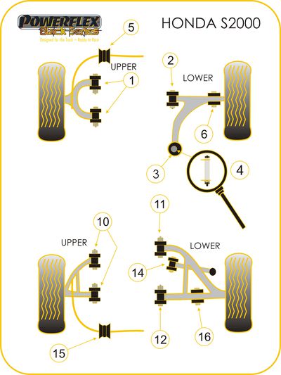 Les silentblocs Powerflex sont fabriqués en polyuréthane de qualité supérieure, apportant une meilleure longévité et une rigidité accrue par rapport aux silentblocs constructeurs (25 à 40% pour la gamme routière). Le polyuréthane est traité pour résister aux différentes souillures qu'il pourrait rencontrer au fil de sa vie (eau, saletés, huiles...) et va contribuer à améliorer la tenue de route de votre véhicule. Les versions Compétition (références se terminant par BLK) ou Black Series sont conseillées pour les véhicules de compétition (sauf Gr N), de circuit, ou préparés, étant mieux adaptés à un usage extrême. N’hésitez pas à nous contacter pour tout conseil sur le choix de la gamme le plus adapté à votre usage.