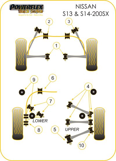 Les silentblocs Powerflex sont fabriqués en polyuréthane de qualité supérieure, apportant une meilleure longévité et une rigidité accrue par rapport aux silentblocs constructeurs (25 à 40% pour la gamme routière). Le polyuréthane est traité pour résister aux différentes souillures qu'il pourrait rencontrer au fil de sa vie (eau, saletés, huiles...) et va contribuer à améliorer la tenue de route de votre véhicule. Les versions Compétition (références se terminant par BLK) ou Black Series sont conseillées pour les véhicules de compétition (sauf Gr N), de circuit, ou préparés, étant mieux adaptés à un usage extrême. N’hésitez pas à nous contacter pour tout conseil sur le choix de la gamme le plus adapté à votre usage.