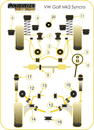 Les silentblocs Powerflex sont fabriqués en polyuréthane de qualité supérieure, apportant une meilleure longévité et une rigidité accrue par rapport aux silentblocs constructeurs (25 à 40% pour la gamme routière). Le polyuréthane est traité pour résister aux différentes souillures qu'il pourrait rencontrer au fil de sa vie (eau, saletés, huiles...) et va contribuer à améliorer la tenue de route de votre véhicule. Les versions Compétition (références se terminant par BLK) ou Black Series sont conseillées pour les véhicules de compétition (sauf Gr N), de circuit, ou préparés, étant mieux adaptés à un usage extrême. N’hésitez pas à nous contacter pour tout conseil sur le choix de la gamme le plus adapté à votre usage.