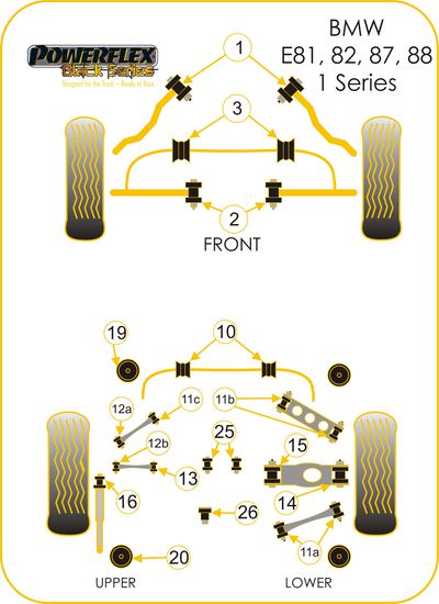 Les silentblocs Powerflex sont fabriqués en polyuréthane de qualité supérieure, apportant une meilleure longévité et une rigidité accrue par rapport aux silentblocs constructeurs (25 à 40% pour la gamme routière). Le polyuréthane est traité pour résister aux différentes souillures qu'il pourrait rencontrer au fil de sa vie (eau, saletés, huiles...) et va contribuer à améliorer la tenue de route de votre véhicule. Les versions Compétition (références se terminant par BLK) ou Black Series sont conseillées pour les véhicules de compétition (sauf Gr N), de circuit, ou préparés, étant mieux adaptés à un usage extrême. N’hésitez pas à nous contacter pour tout conseil sur le choix de la gamme le plus adapté à votre usage.