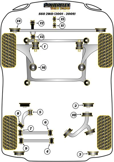 Silentbloc de liaison supérieur arrière Powerflex - Volvo S60 (Gamme compétition) - PFR88-610BLK