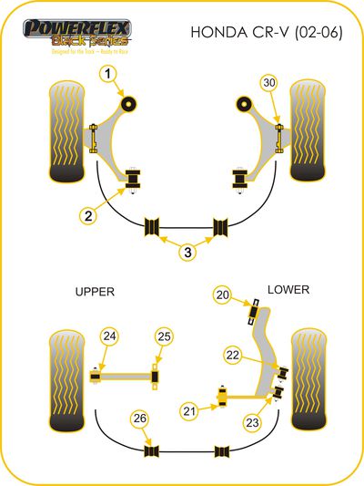 Les silentblocs Powerflex sont fabriqués en polyuréthane de qualité supérieure, apportant une meilleure longévité et une rigidité accrue par rapport aux silentblocs constructeurs (25 à 40% pour la gamme routière). Le polyuréthane est traité pour résister aux différentes souillures qu'il pourrait rencontrer au fil de sa vie (eau, saletés, huiles...) et va contribuer à améliorer la tenue de route de votre véhicule. Les versions Compétition (références se terminant par BLK) ou Black Series sont conseillées pour les véhicules de compétition (sauf Gr N), de circuit, ou préparés, étant mieux adaptés à un usage extrême. N’hésitez pas à nous contacter pour tout conseil sur le choix de la gamme le plus adapté à votre usage.