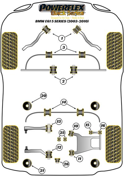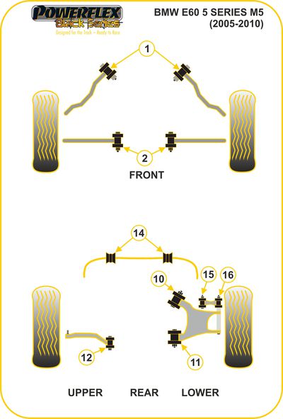 Les silentblocs Powerflex sont fabriqués en polyuréthane de qualité supérieure, apportant une meilleure longévité et une rigidité accrue par rapport aux silentblocs constructeurs (25 à 40% pour la gamme routière). Le polyuréthane est traité pour résister aux différentes souillures qu'il pourrait rencontrer au fil de sa vie (eau, saletés, huiles...) et va contribuer à améliorer la tenue de route de votre véhicule. Les versions Compétition (références se terminant par BLK) ou Black Series sont conseillées pour les véhicules de compétition (sauf Gr N), de circuit, ou préparés, étant mieux adaptés à un usage extrême. N’hésitez pas à nous contacter pour tout conseil sur le choix de la gamme le plus adapté à votre usage.