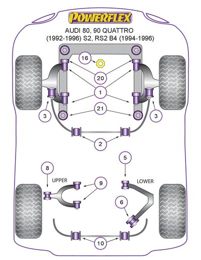 Les silentblocs Powerflex sont fabriqués en polyuréthane de qualité supérieure, apportant une meilleure longévité et une rigidité accrue par rapport aux silentblocs constructeurs (25 à 40% pour la gamme routière). Le polyuréthane est traité pour résister aux différentes souillures qu'il pourrait rencontrer au fil de sa vie (eau, saletés, huiles...) et va contribuer à améliorer la tenue de route de votre véhicule. Les versions Compétition (références se terminant par BLK) ou Black Series sont conseillées pour les véhicules de compétition (sauf Gr N), de circuit, ou préparés, étant mieux adaptés à un usage extrême. N’hésitez pas à nous contacter pour tout conseil sur le choix de la gamme le plus adapté à votre usage.