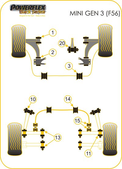 Silentbloc de barre anti-roulis arrière en 21,4mm Powerflex - Mini F56 (Gamme compétition)
