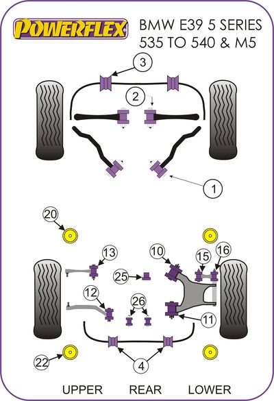Silentbloc intérieur de bras Powerflex - BMW E39 (Gamme compétition) - PFF5-502BLK
