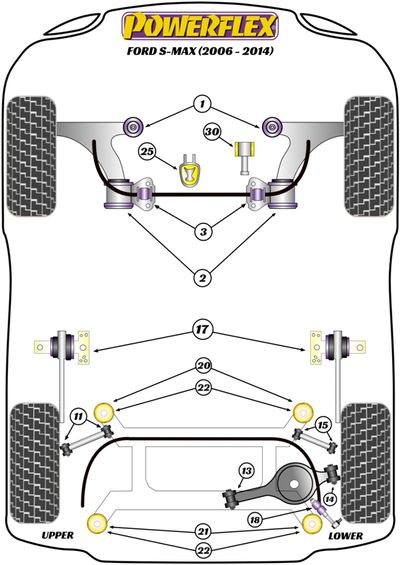 Silentbloc de biellette sur barre anti-roulis arrière Powerflex - Ford/Volvo (Gamme compétition) - PFR19-1918BLK