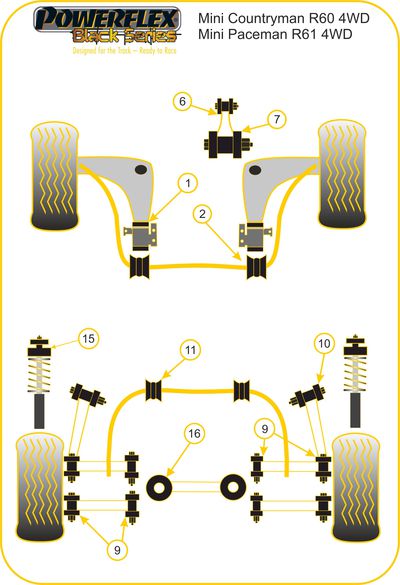 Gros silentbloc de support moteur inférieur Powerflex - Mini R60 et R61 2RM - PFF5-1822