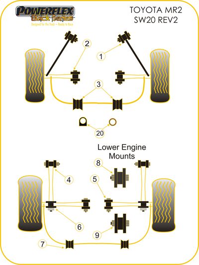 Silentbloc avant de bras de tirant arrière Powerflex – Toyota MR2 SW20 - PFR76-304