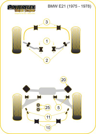 Silentboc de barre anti-roulis AV en 22mm Powerflex - BMW E21 (Gamme compétition) - PFF5-1603-22BLK